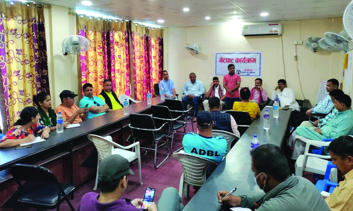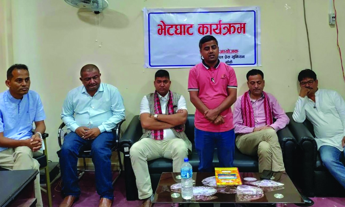 नेपाल प्रेस युनियन बाँकेका अध्यक्ष अर्जुन ओलीको सभापतित्वमा सम्पन्न भएको भेटघाट कार्यक्रममा अकोरावका केन्द्रिय अध्यक्ष अर्जुन गिरी, युनियनका केन्द्रिय उपमहासचिव प्रेम केसी, कोषाध्यक्ष सरोज अधिकारी, केन्द्रिय सदस्य जयसिंह केसी, नेपाल पत्रकार महासंघ लुम्बिनी प्रदेशका उपाध्यक्ष शुक्रऋषी चौलागाई, नेपाल पत्रकार महासंघ बाँके शाखा अध्यक्ष दामोदर भण्डारी, युनियन बाँकेका पूर्वअध्यक्ष मेघराज ओली, निर्वतमान अध्यक्ष जयनारायण शाह, सल्लाहकार चेतकान्त भट्टराई लगायतले युनियनको महाधिवेशन र स्थानीय तह निर्वाचनमा युनियनले खेल्नुपर्ने भूमिका लगायत विषयमा आ–आफ्नो धारणा राखेका थिए । उक्त कार्यक्रमको सञ्चालन युनियन बाँकेका सचिव विजय मल्लले गरेका थिए ।
