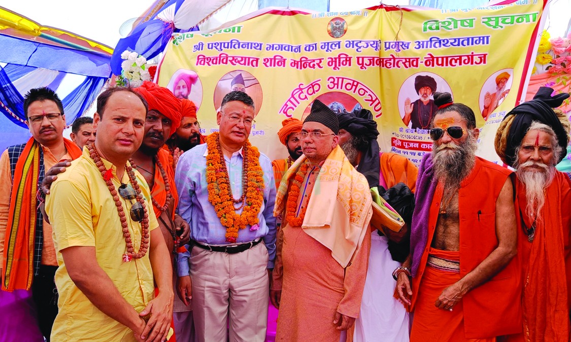 नेपालगन्ज १० वैशाख : पशुपतिनाथ मन्दिर काठमण्डौंका मुल भट्ट राबल गणेश भट्टले जानकी गाउपालिका वडा नम्बर–६ गनापुरमा शनिधाम मन्दिरको शिलान्यास गरेकाछन् ।
