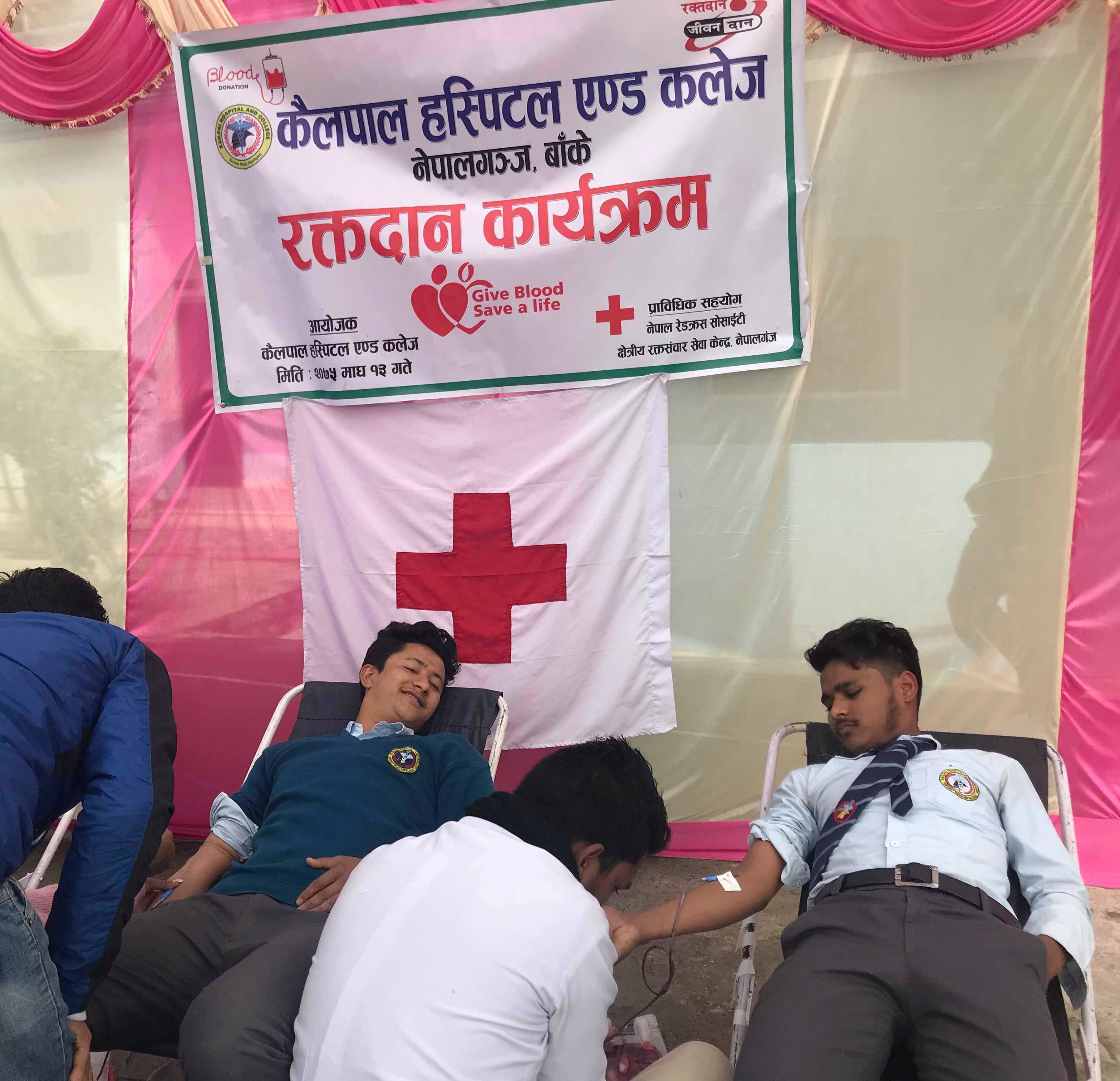 रक्तदान कार्यक्रममा कलेजका विद्यार्थी, शिक्षक तथा कर्मचारीले रक्तदान गरेका थिए । प्रवन्ध निर्देशक सिंहले ५६ जनाले रक्तदान गरेको जानकारी दिइन् । कलेजले हरेक बर्ष कुनै न कुनै अवसर पारेर रक्तदान आयोजना गर्ने गरेको जानकारी दिईन् । कैलपाल हस्पिटल एण्ड कलेजले विभिन्न सामाजिक कार्य गर्दै आएको छ ।