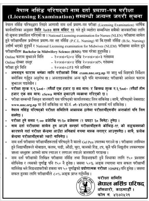 काउन्सिलले शुक्रबार एक सूचना जारी गर्दै लाईसेन्स परीक्षाका लागि आवेदन खुला गरेको जानकारी दिएको छ ।