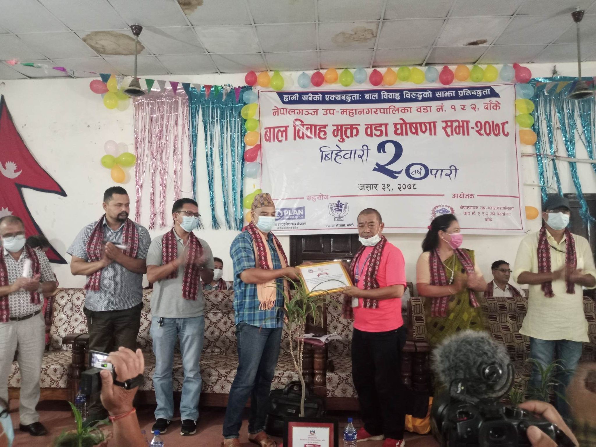 नेपालगन्ज उपमहानगरपालिकाका मेयर डाक्टर धवल शम्शेर राणाको प्रमुख आतिथ्यतामा सम्पन्न बालविवाह मुक्त वडा घोषणा कार्यक्रममा बालविवाह मुक्त वडा घोषणाका लागि योगदान दिने विभिन्न कार्यालय, संघसंस्था तथा व्यक्तिहरुलाई सम्मानपत्र प्रदान गरिएको थियो ।