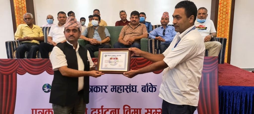 महासङ्घ बाँके शाखामा आवद्ध ३२३ जना पत्रकारसहित जम्मा ३५३ जना पत्रकारहरुको दुई लाख रुपैयाँको दुर्घटना बीमा गरिएकोछ ।