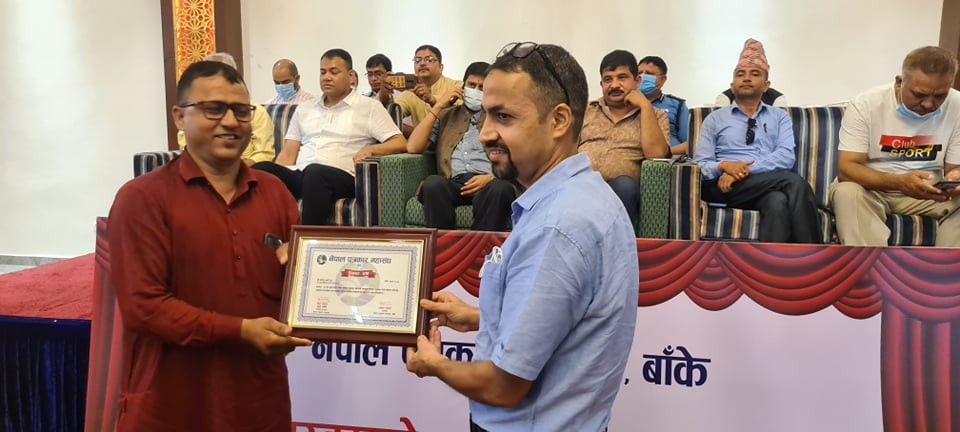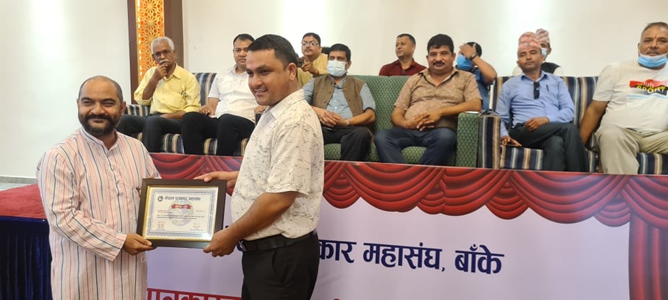 नेपालगन्ज २२ असोज : नेपाल पत्रकार महासंघ बाँके शाखाले कोभिड–१९ रोकथाम र नियन्त्रणमा महत्वपूर्ण भूमिका निर्वाह गरेको भन्दै बाँकेका विभिन्न ब्यक्तित्वलाई सम्मान गरेकोछ ।
